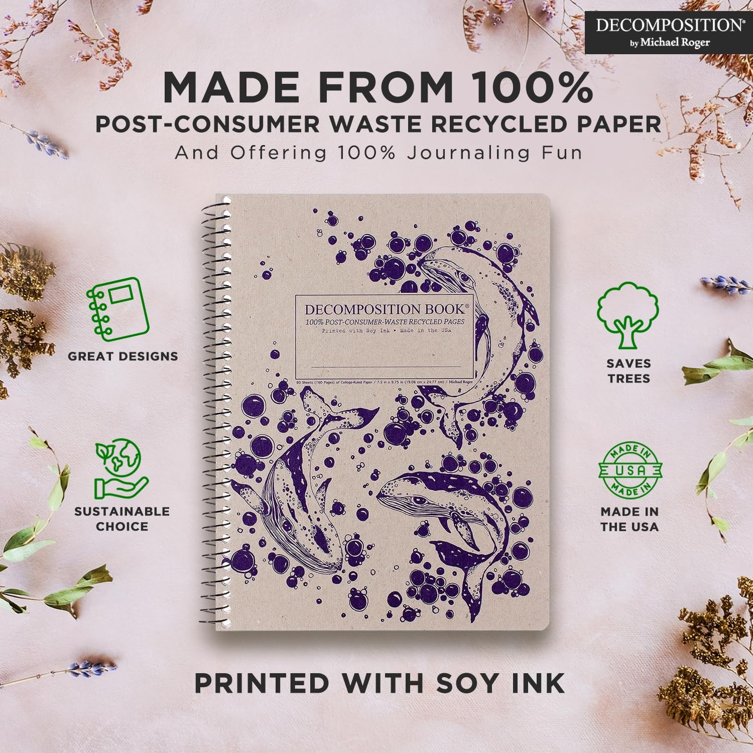 - Made in USA: Decomposition Books are American made, meaning we support American manufacturing jobs, ensure the shortest supply chain with the lightest-possible carbon footprint and can attest to the workplace protections domestic manufacturers must uphold.