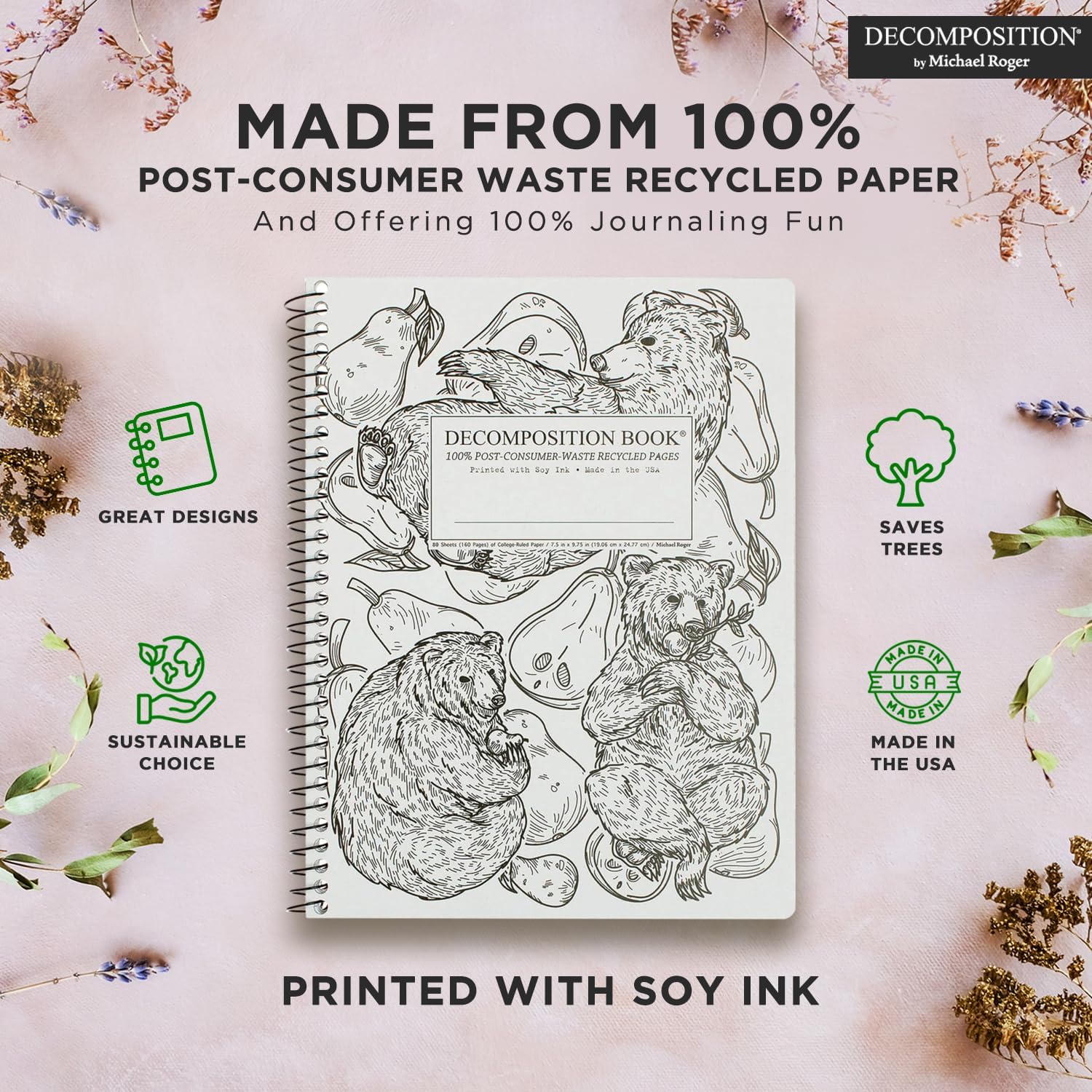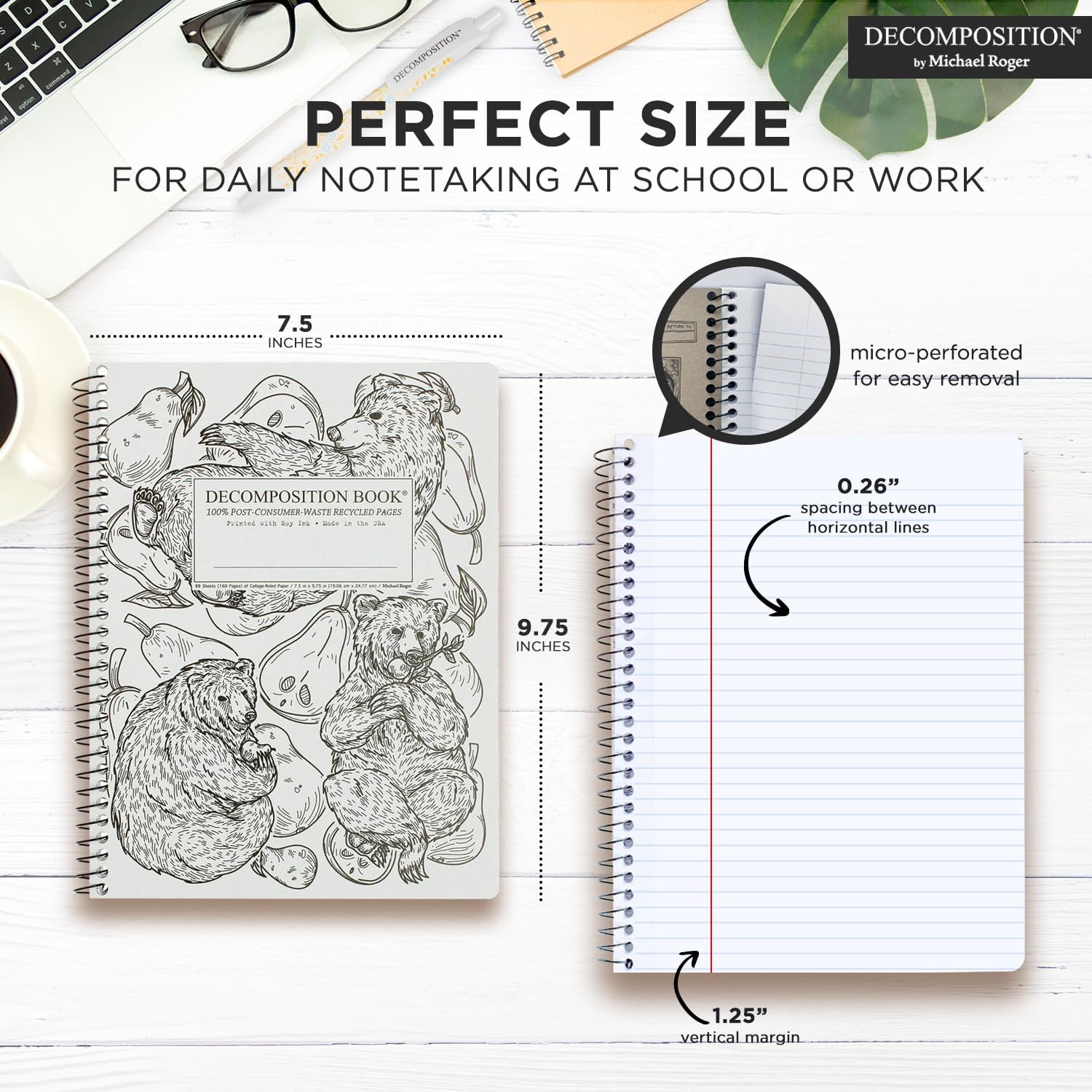 Decomposition Pear Bears College Ruled Spiral Notebooks – 9.75 x 7.5 Journal with 160 Lined Pages – Notebooks for School Supplies, Home & Office – 100% Recycled Paper – Made in USA