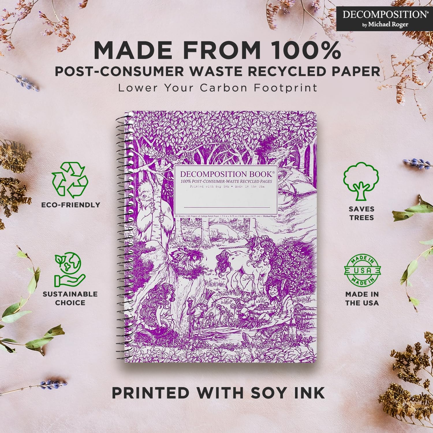 Decomposition Fairy Tale Forest College Ruled Spiral Notebook - 9.75 x 7.5 Journal with 160 Lined Pages - 100% Recycled Paper - Cute Notebooks for School Supplies, Home & Office - Made in USA