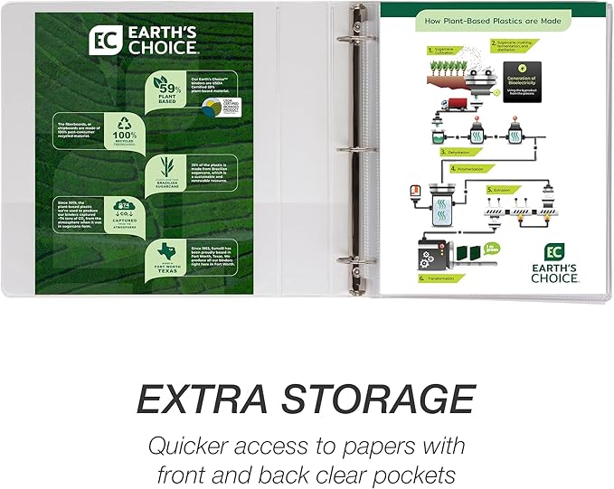 - Sustainable Solution: Our durable 3 ring binders are made from plant-basedcover material derived from 25% Brazilian sugarcane and FSC Certified 100% recycled fiber boards. Our planet-friendly binders are ideal for safe and green organization for your home, office, or classroom.
