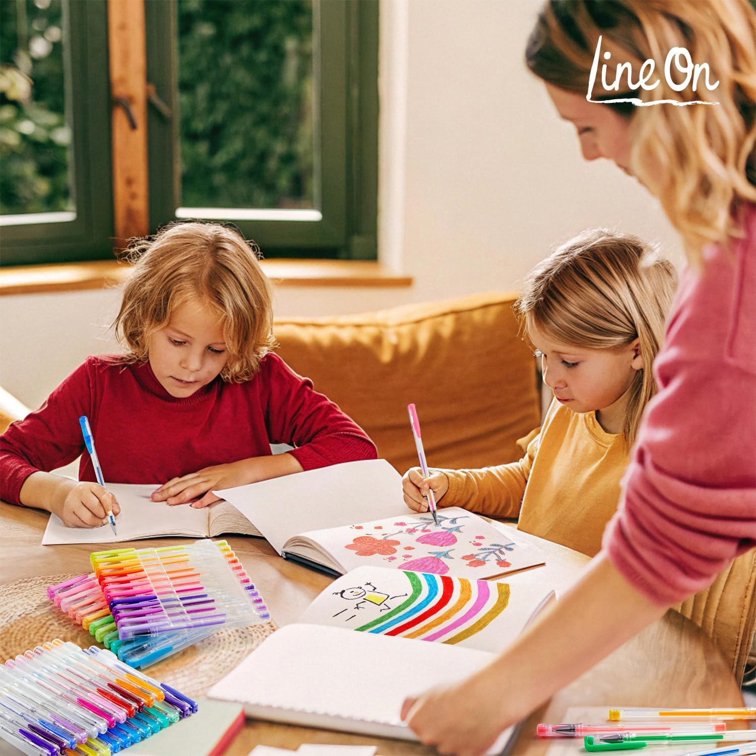 - Lineon gel pens with 108 unique colors, are ideal for adult coloring books.