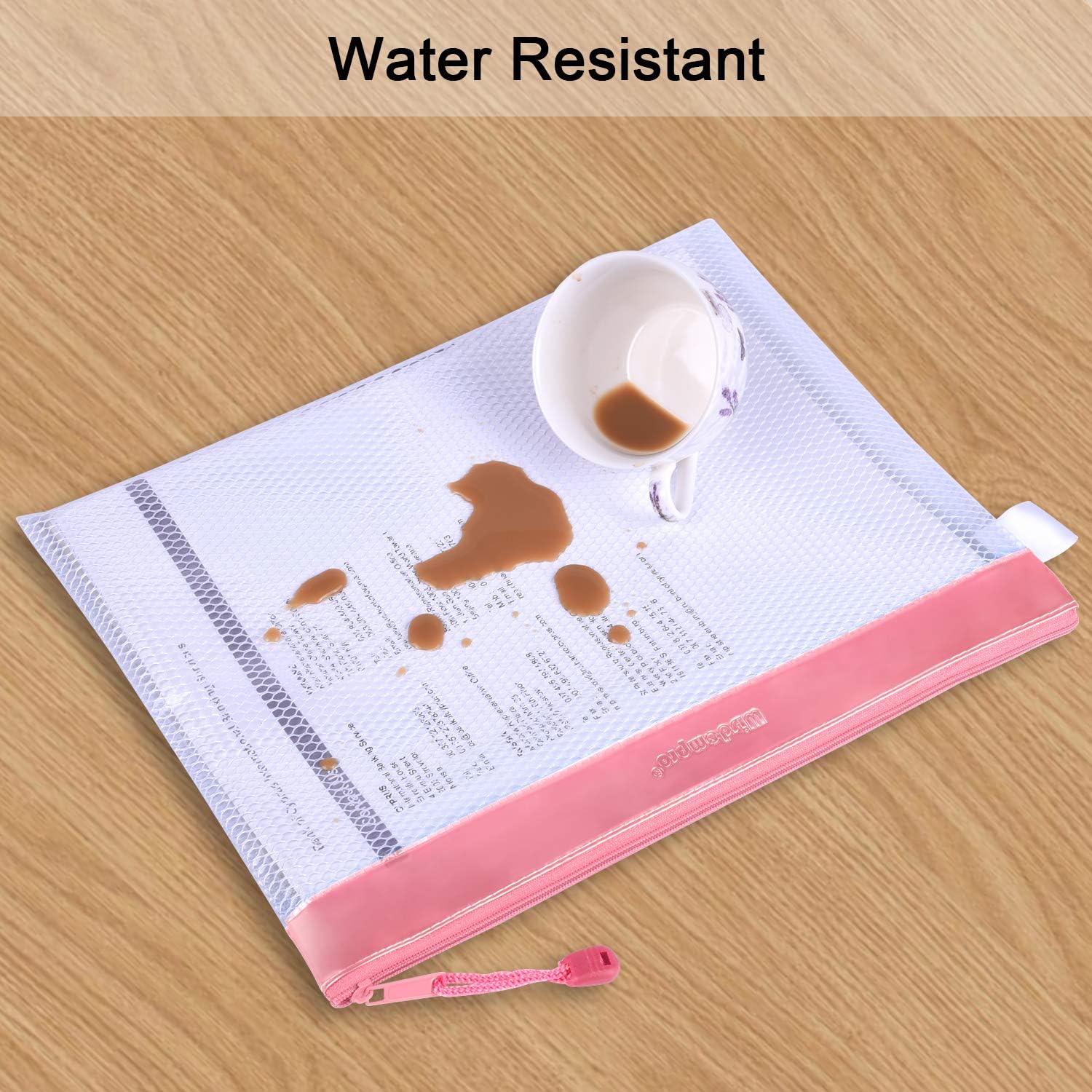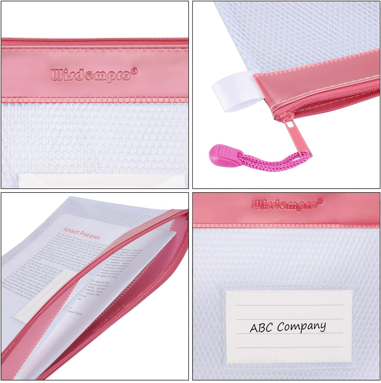 Zipper Pouch, Wisdompro 4 Packs Durable Letter Size Waterproof Mesh File Bag, Document Organizer - Pink