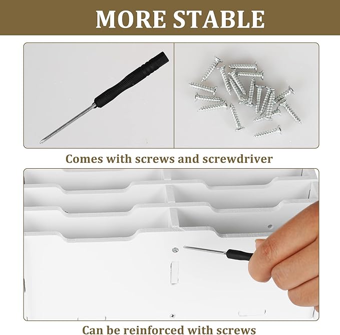 Wooden 12-Compartment Desktop Organizer Multifunctional Storage Box Desk Supplies for Cell Phones Holder White (12-Grid)