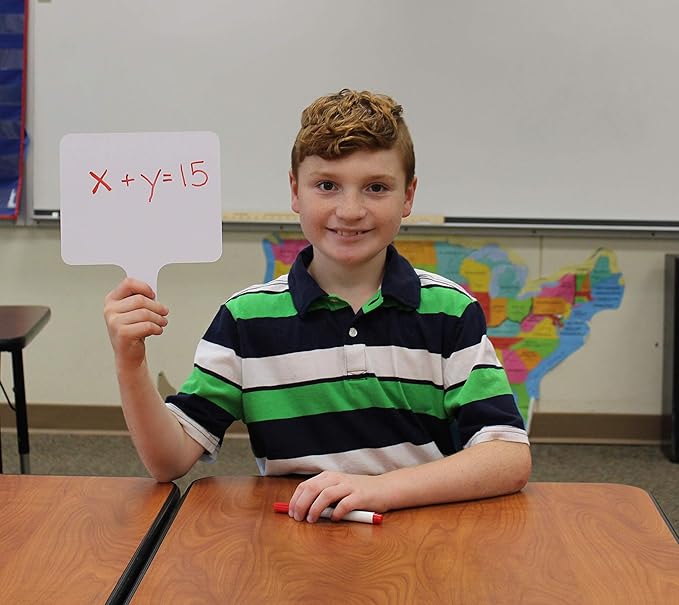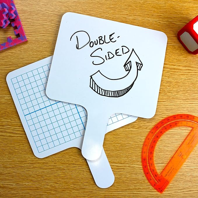 - PACK OF 12 WITH EXTRAS – Includes 12 paddles, 12 black dry erase markers, and 12 erasers (2" x 2" x 1") for a complete set.
