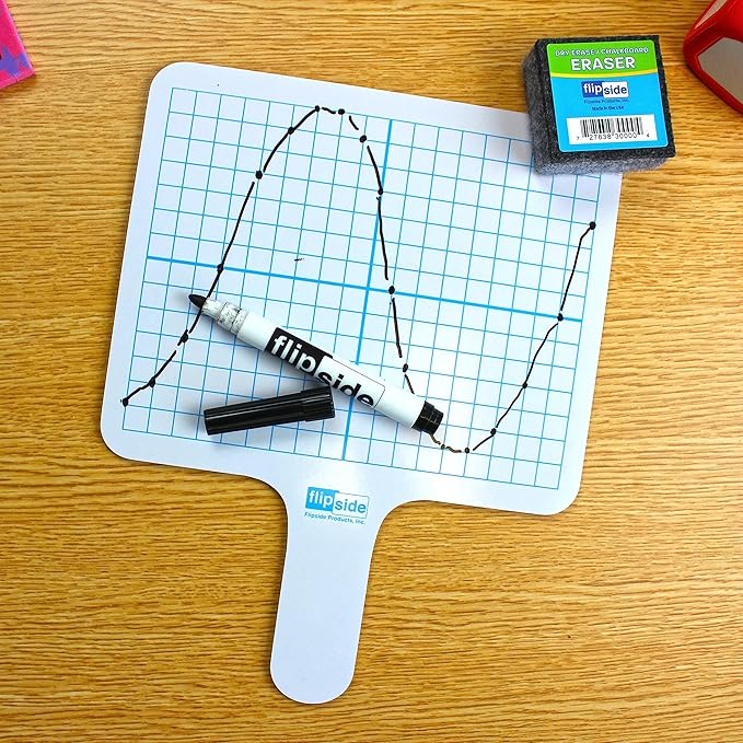 Flipside Products Double Sided Rectangular Graph Dry Erase Answer Paddles w/Black Dry Erase Marker and Erasers, Auction Handheld Whiteboard, Handle Response Board, 36 Pieces, Math Practice, 12 Set