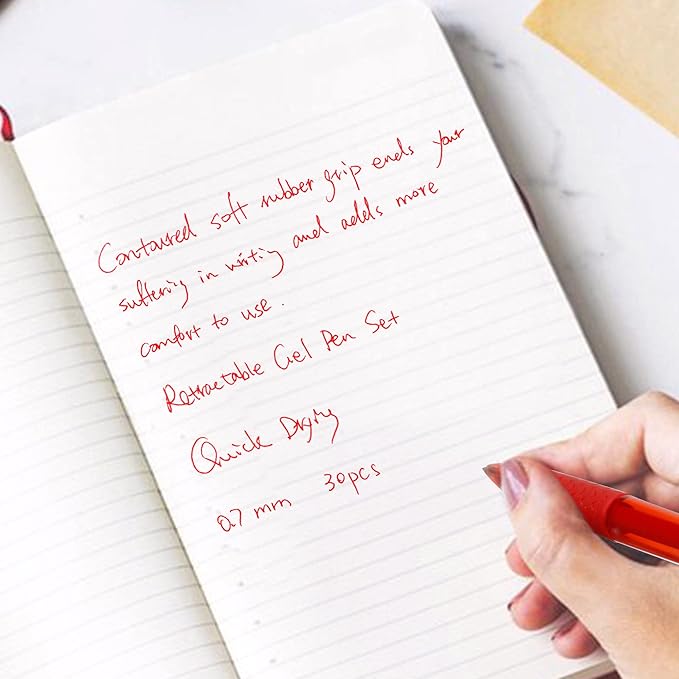 - Feela 30 Retractable Gel Pen set comprises 15 red ink retractable gel pens and 15 red ink refills.All with 0.7mm tip point.