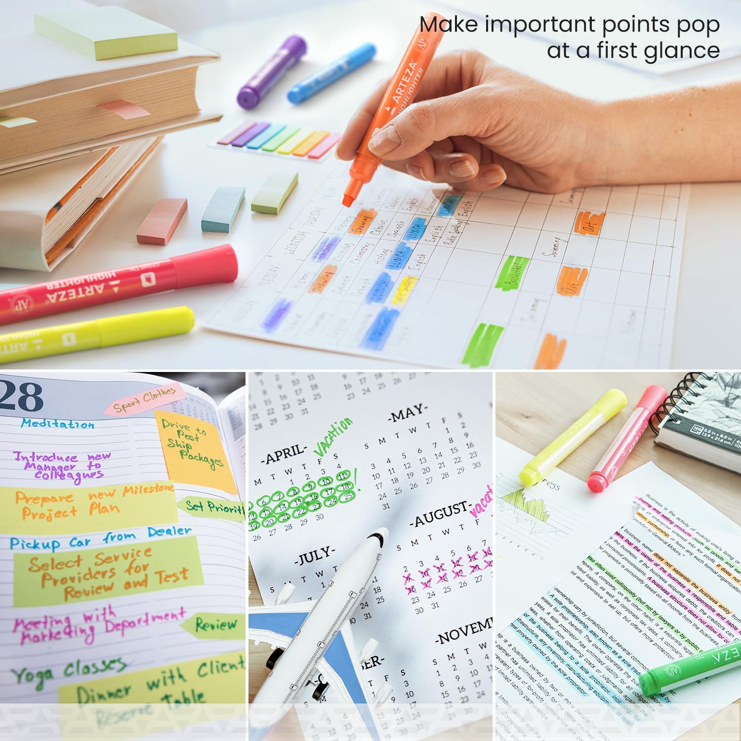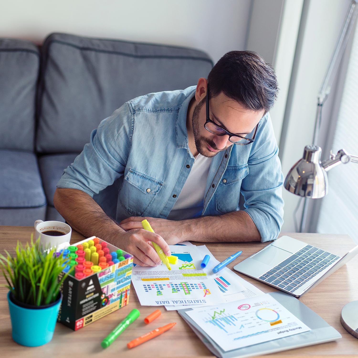 - Fluorescent Markers: Emphasize useful info with one of the 6 neon colors in your pack of 60 Arteza bulk highlighter markers, such as yellow, blue, pink, purple, green and orange.