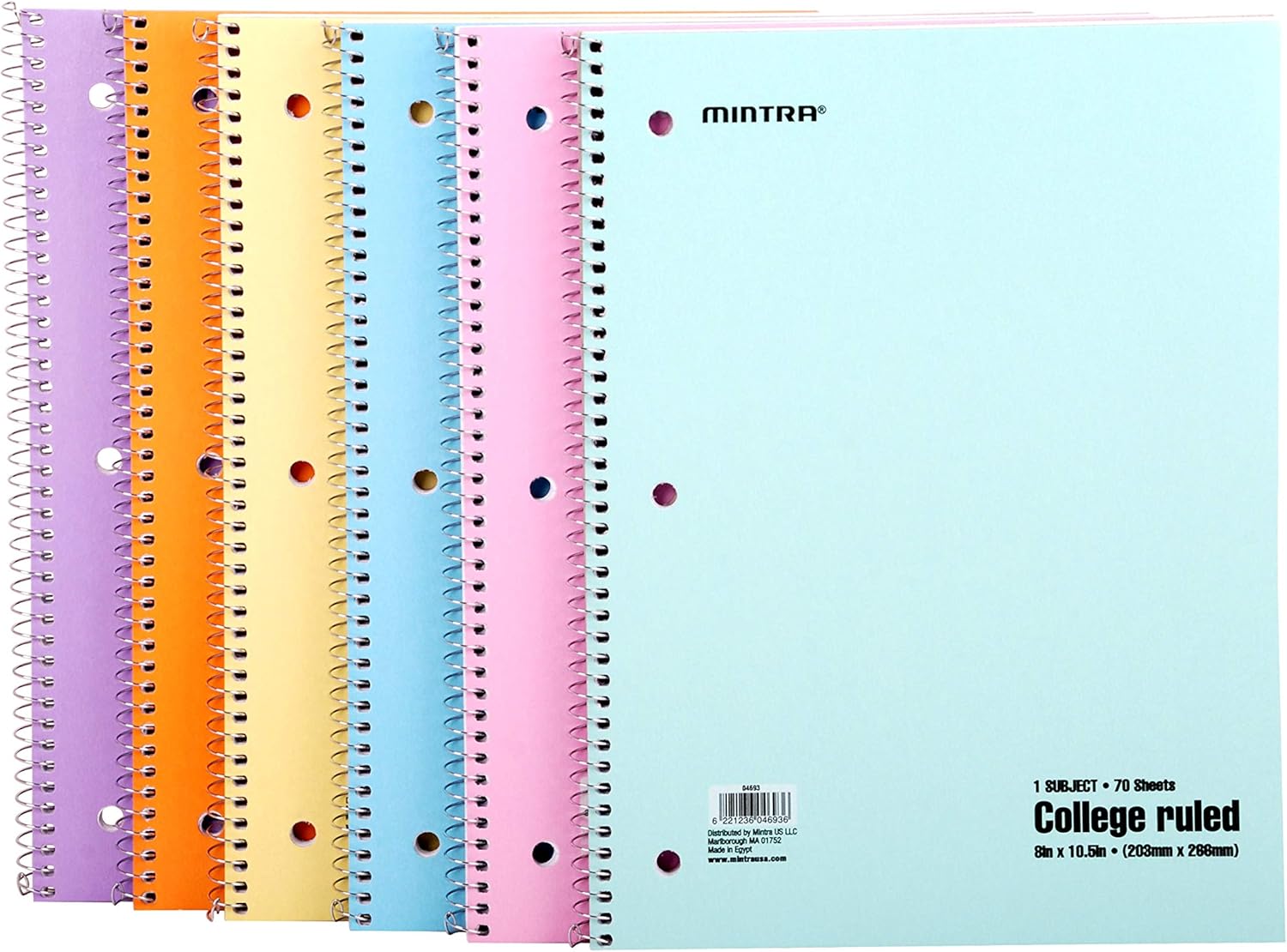 Mintra Office Spiral Notebooks (Pastel - College Ruled, 24pk (4-6pks))
