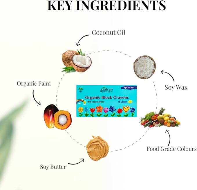 - No Paraffin, Petroleum Wax or Animal-derived Wax: Azafran Organic Natural Crayons for Toddlers are made using only natural ingredients with no paraffin, petroleum wax or animal-derived wax unlike the regular crayons.