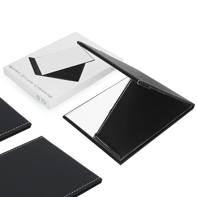 EFAILY Folding Travel Mirror, PU Portable Adjustable Rectangular Ultrathin Mirror, for Travel, Camping,Home(6.4W×5.3L)