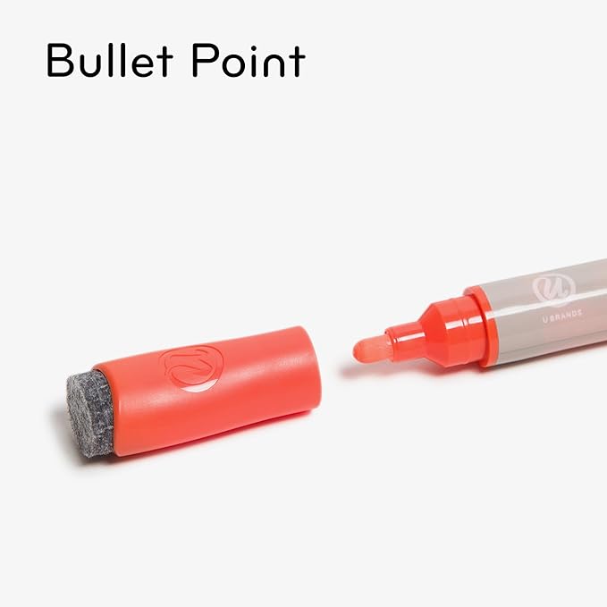 U Brands Bold Tip Liquid Glass Whiteboard Markers with Eraser for Glass Boards, Dry Erase Boards, and Chalk Boards, Assorted Bright Colors, Set of 12