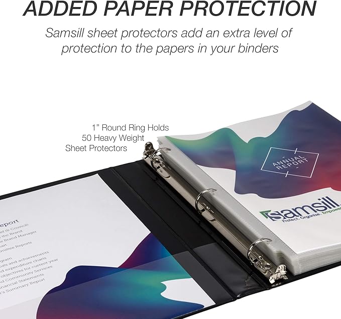 - Heavy-Duty 3-Ring Binders: Built to withstand frequent handling in classrooms, offices, and professional settings, these 1-inch durable binders securely hold up to 200 sheets of standard 8.5" x 11" paper. The robust round-ring design provides smooth page turning with reinforced hinges for long-lasting reliability. Equipped with two clear interior pockets, they’re ideal for keeping important documents, project materials, or office essentials organized and secure