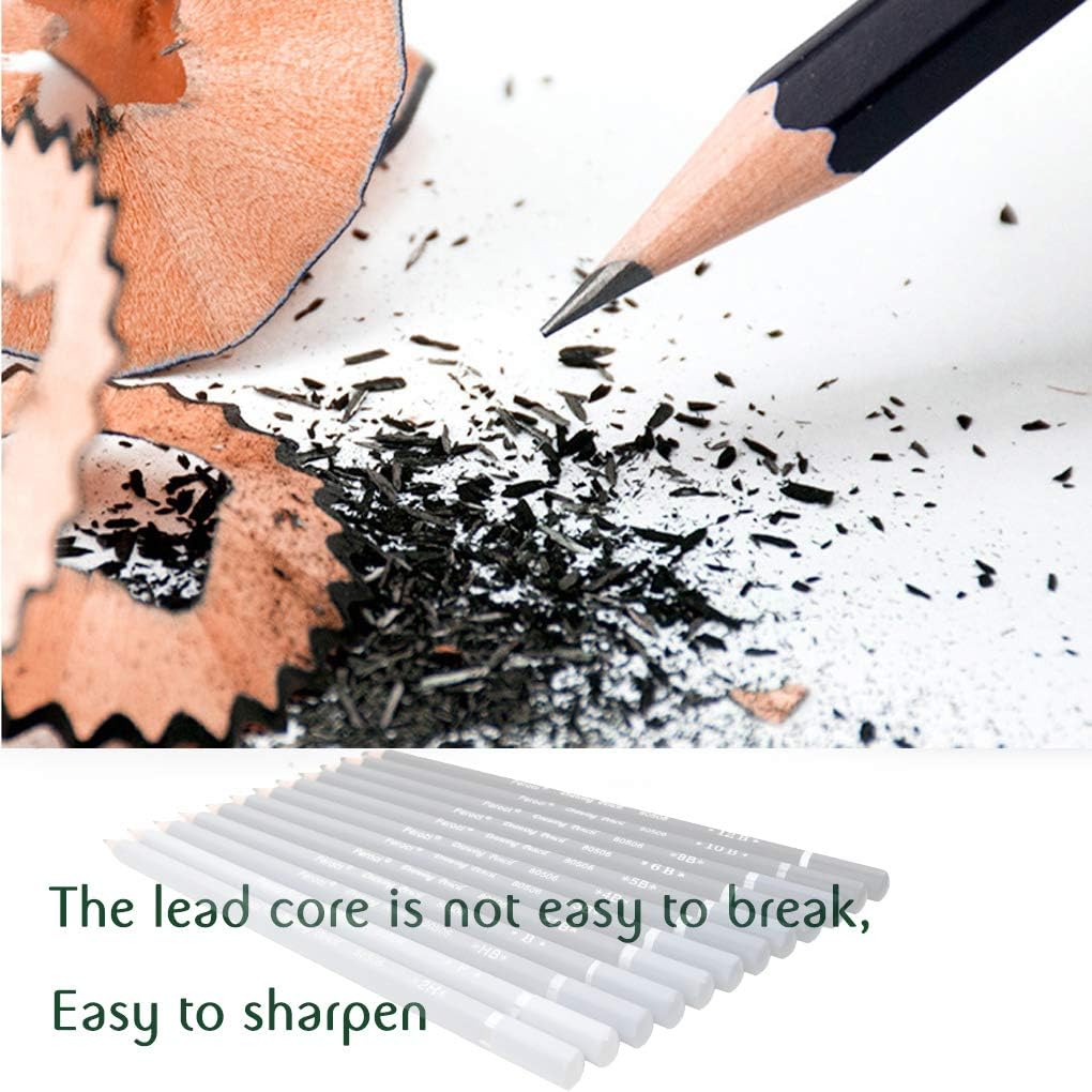 - Smooth, Simple & Precise Application --- Use different pencil numbers for soft and hard drawing. Scratch-resistant and durable leads. The set includes all fine art pencils for sketching, details and professional drawing work. With this extensive sketch pencil kit, you can draw all kinds of drawing sketches. Paint on paper or different painting surfaces. Easily draw and erase. Type H allows shallower drawing, while type B can produce more black lines.