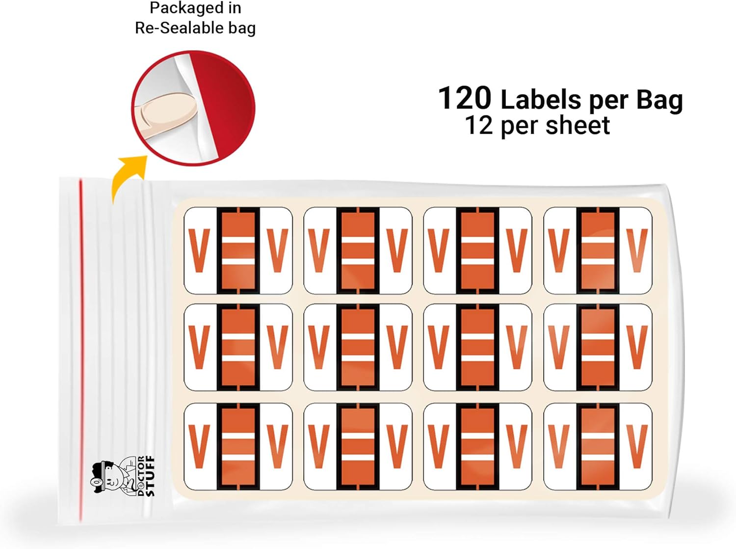 Doctor Stuff - File Folder Labels, Alphabet Letter V Stickers, Compatible with Smead BCCR/BCCS - TPAM Series Alpha Stickers Orange, 1" x 1-1/4", 120 Labels per Package