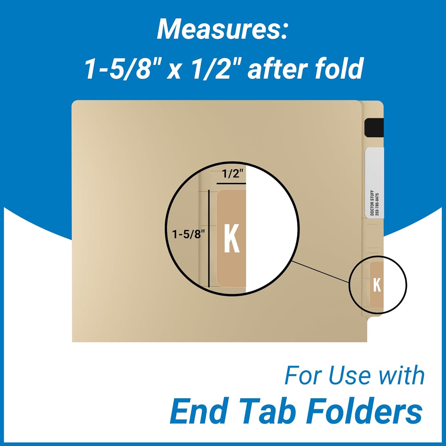 Doctor Stuff - File Folder Labels, Alphabet Letter K, Compatible with Smead Alpha Z Acc/ACCS - SMSM Series Alpha Stickers Light Brown, 1-5/8" x 1”, 250/Roll