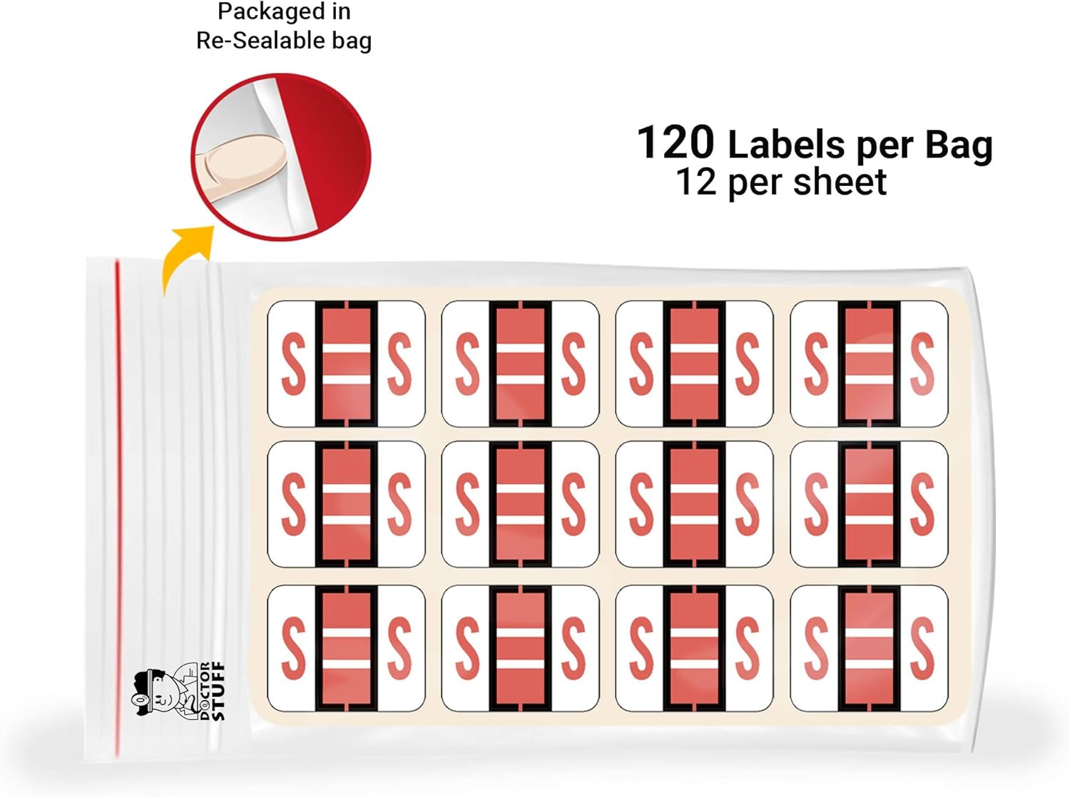 Doctor Stuff - File Folder Labels, Alphabet Letter S Stickers, Compatible with Smead BCCR/BCCS - TPAM Series Alpha Stickers Pink, 1" x 1-1/4", 120 Labels per Package