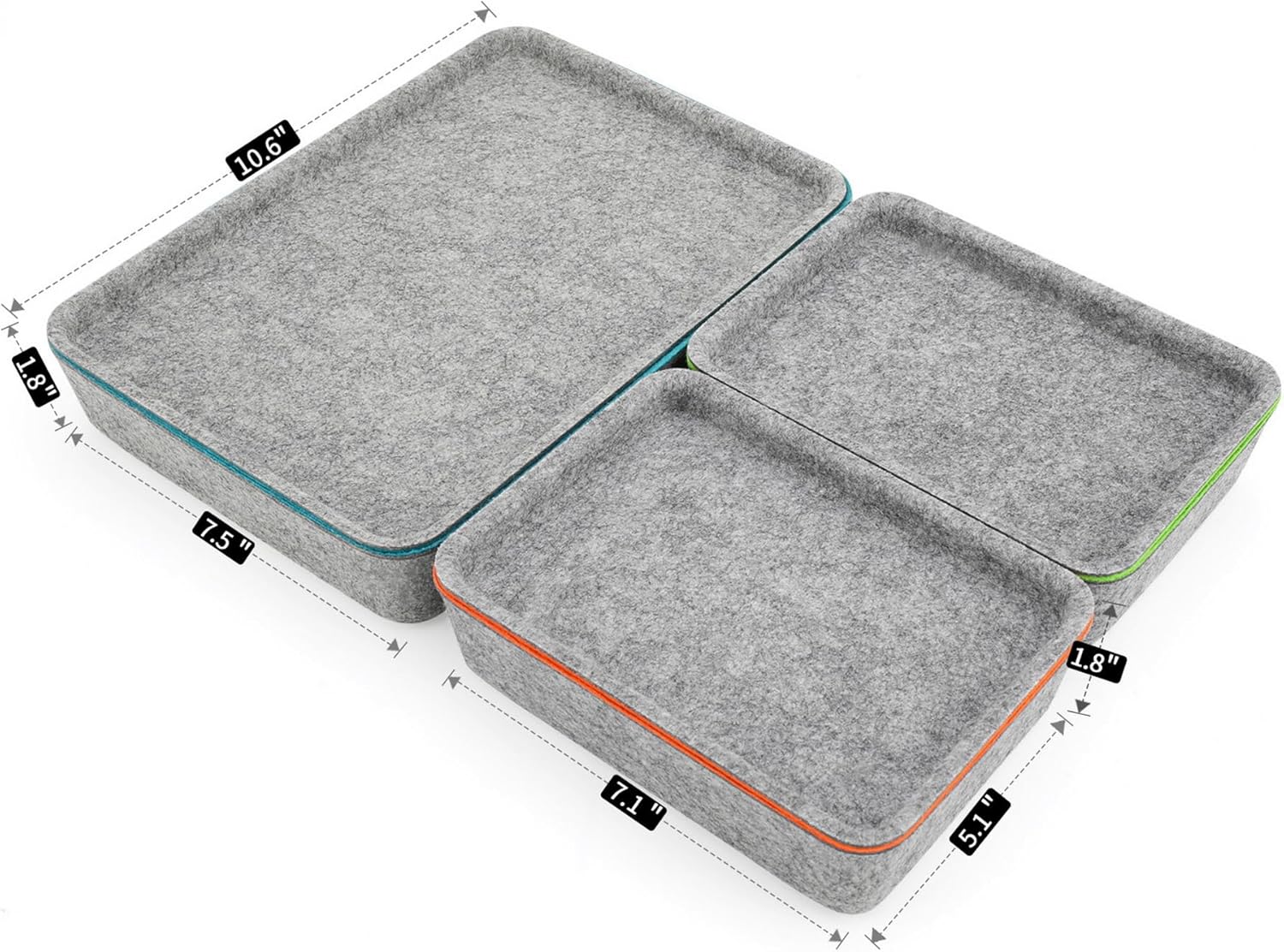 - 【Sustainable material】 recycled felt with a comfortable touch feeling. no noise like plastic keeps stuff from flying around in the drawer. The soft felt material protects your valuables from scratches while adding a touch of sophistication to any space.
