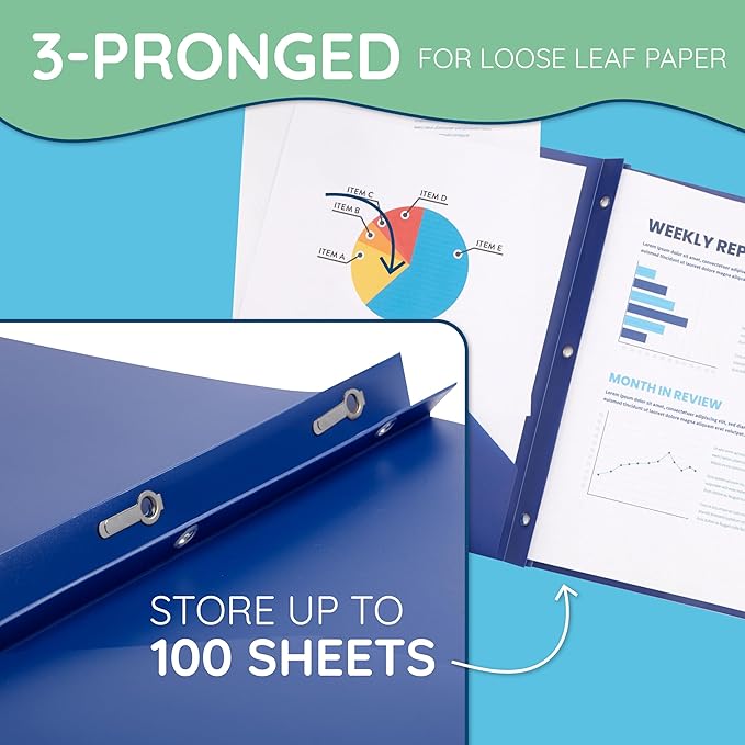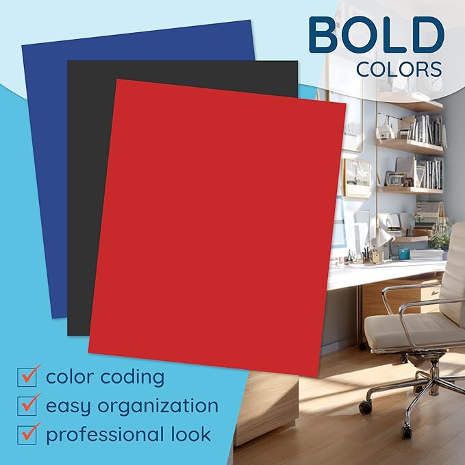 - Easily separate your important documents and assignments by projects using these 2 pocket portfolios with prongs that come in 3 rich colors to help keep you organized at work or school, including 10 colors each in black, blue, and red