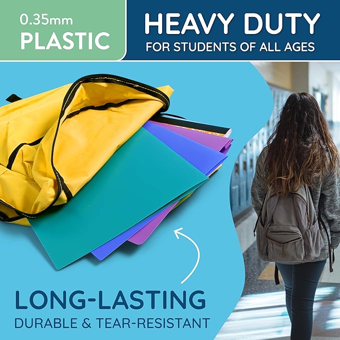 - Use our durable poly plastic folders with pockets regularly without worry that they won’t last with our heavy-duty plastic construction that resists tearing and ripping
