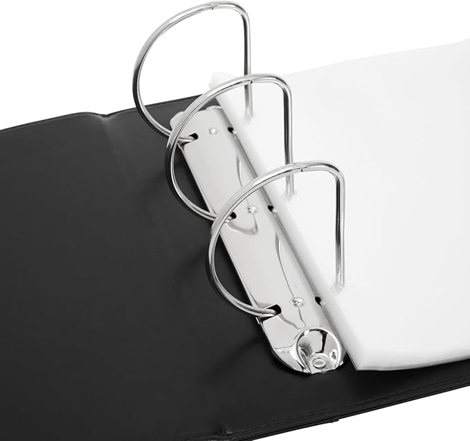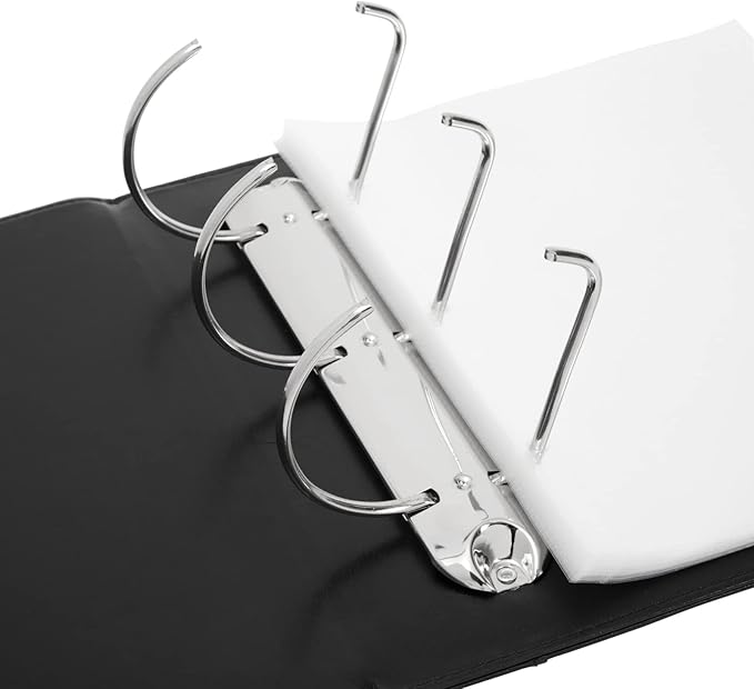 - Material : Made of quality faux leather with 3 rings and clear plastic sleeves