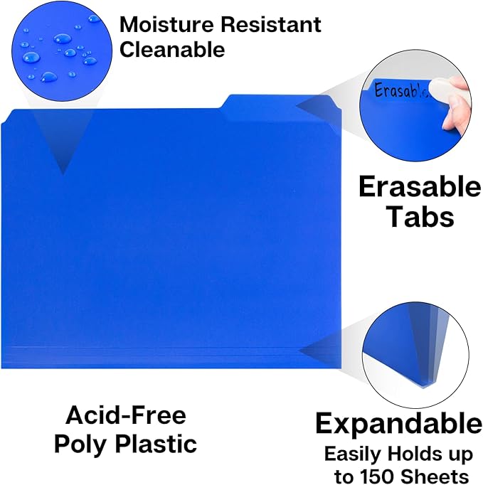 - Durable File Folders: Plastic manila folders 8.5x11, reusable poly file folders letter size. Tear-resistant, cleanable, acid-free. Heavy duty for long term storage.