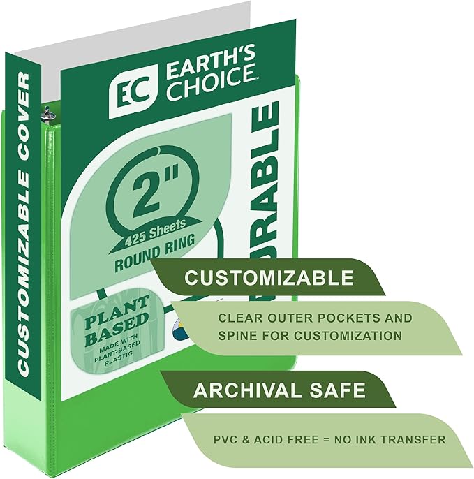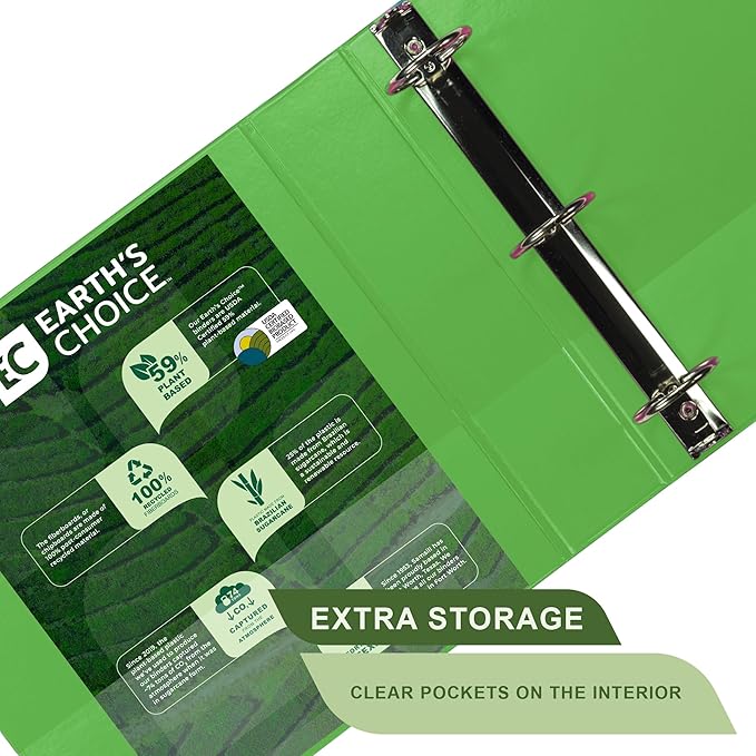 - Sustainable Solution: Our binder is made from plant-based materials, including a polypropylene cover derived from 25% Brazilian sugarcane and 100% recycled fiber boards. Brazilian sugarcane is chosen for its renewable nature and minimal impact on food crops, while actively capturing CO2 from the atmosphere