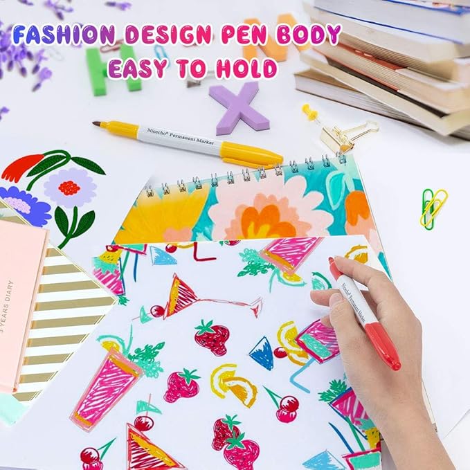 Nicecho Permanent Markers, 30 Colored Fine Point Marker Pens, Waterproof Marker Works on Paper, Plastic, Wood, Metal and Glass