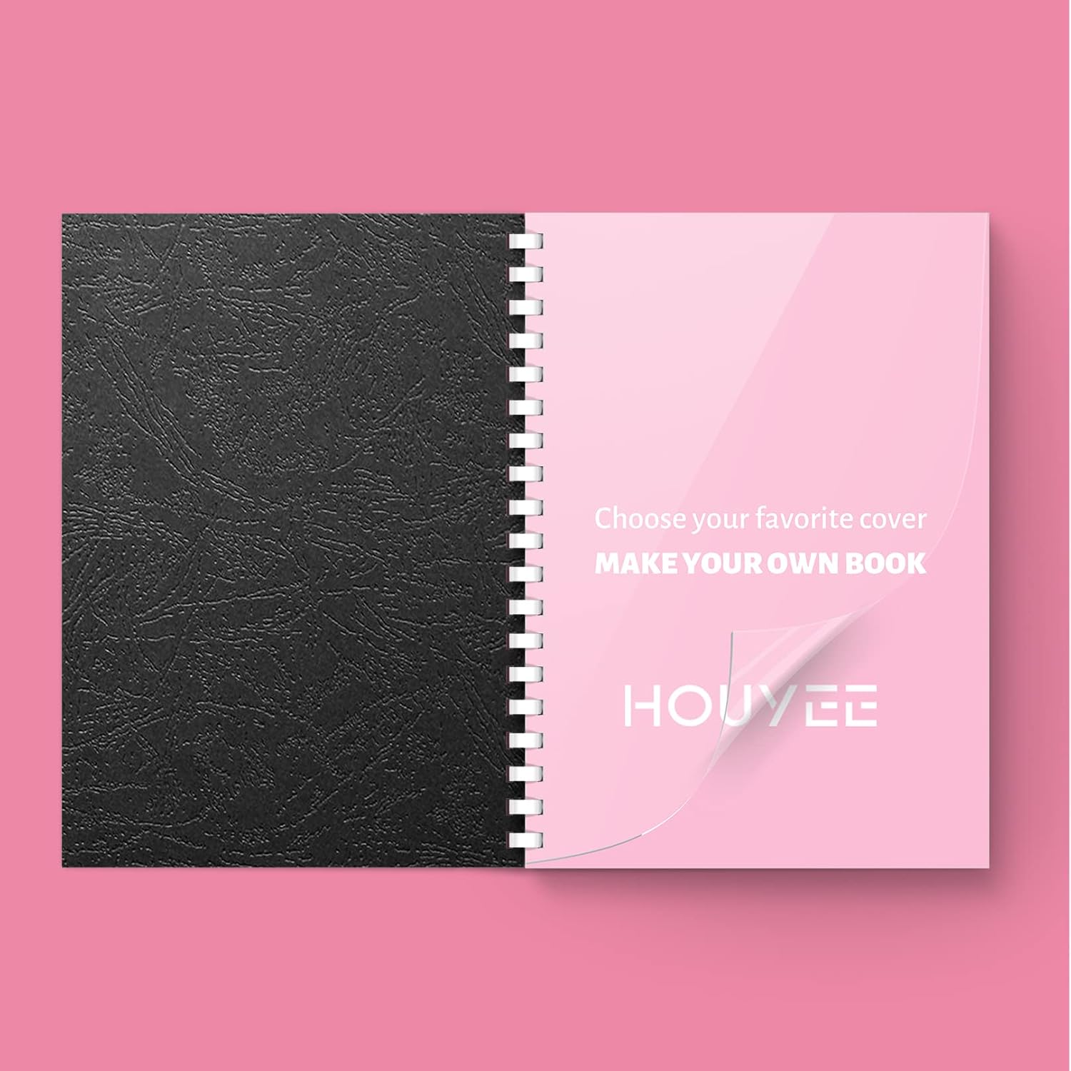 HOUYEE Binding Covers and Combs Set, 8.5x11 Inches, Including 50 Pcs Leather Texture Paper Binding Covers, 50 Pcs 8 Mil Clear PVC Sheets and 20 Pcs Assorted Combs