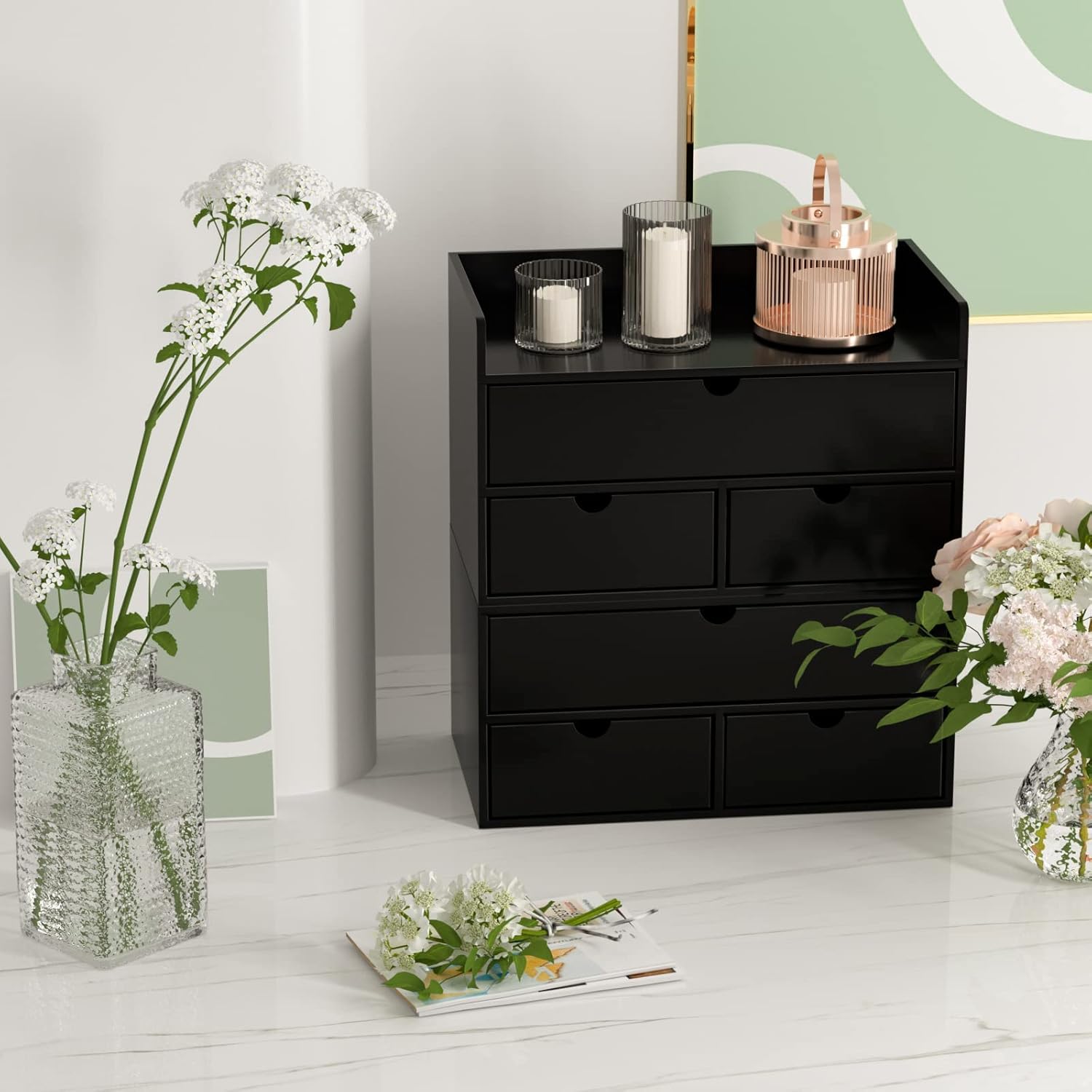 - 【Storage and Multi-function】 Dimension: 12.99” x 6.6” x6.29”(L*W*H). The Drawer Organzier can store all kinds of documents, tools, accessories and bills of your desk. You can put this desktop organizer with drawers in the office, study, dresser, bathroom,countertop,etc.
