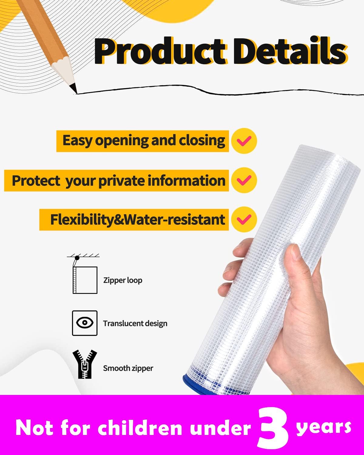 - DURABLE & PORTABLE: SUNEE zipper file bags are made of thick vinyl material, water-resistant, moisture-resistant. Each metal zipper is equipped with a rope loop, which is strong and durable. It can be used as a hanging ring and ready to hang