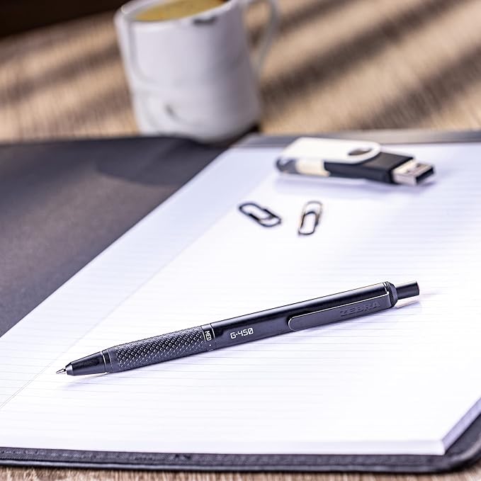 Zebra Pen G-450 Retractable Gel Pen, Black Brass Barrel, Medium Point, Black Ink, 2-Pack (49512)