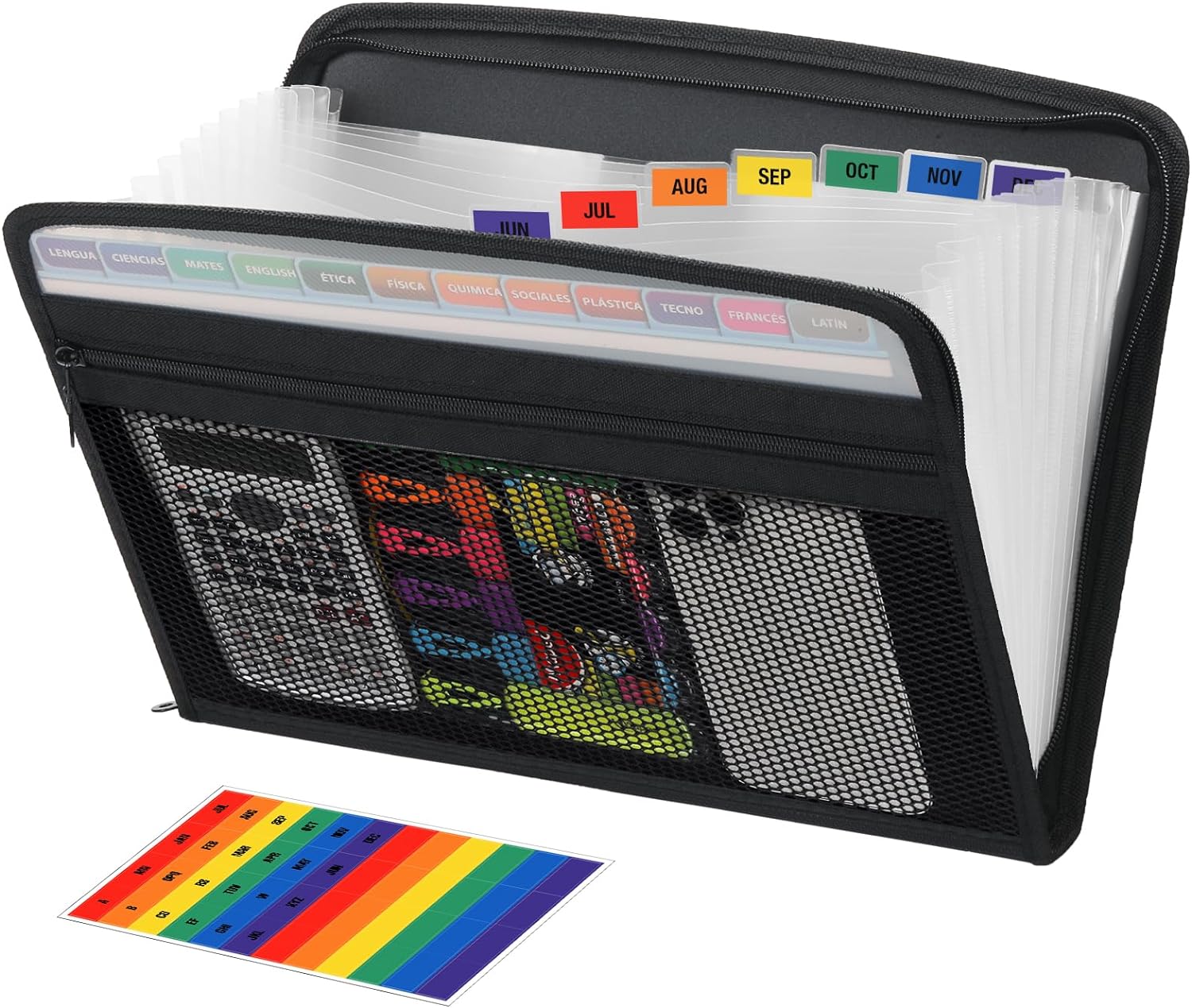 - FRONT ZIPPER MESH POCKET: A roomy mesh pocket with zipper closure added on the front, designed for taking more school office supplies like pens, eraser, calculator, or receipts, invoices papers storage with this expandable file folder organizer