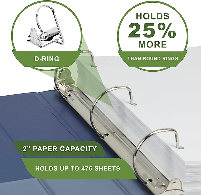 - Easy Customization: Each 2-inch 3 ring binder features a clear overlay with a non-glare finish; Our 3 ring binders allow for complete customization - perfect for organization and presentations