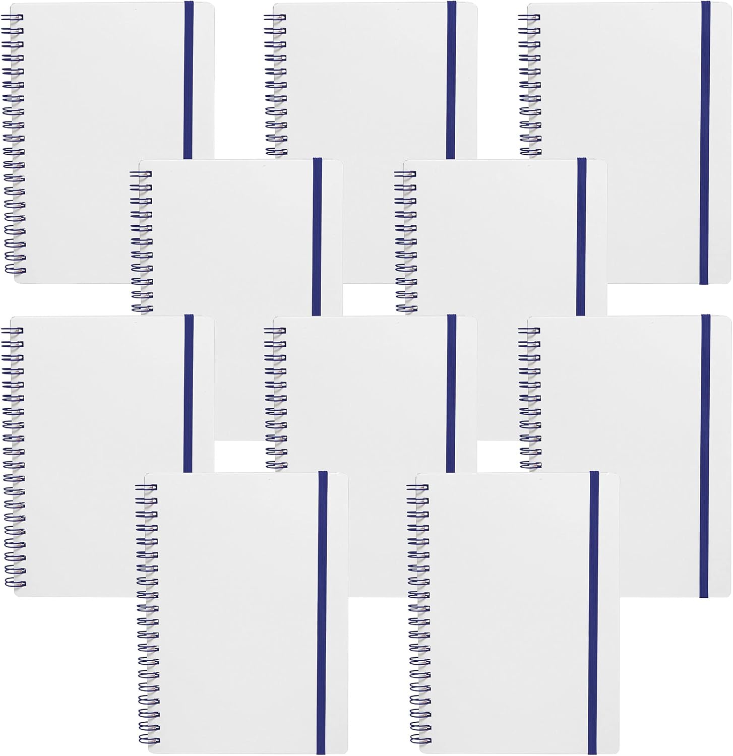 10 White Spiral Notebooks with Elastic Band Pack - 80 lined pages, Recycled - Blue