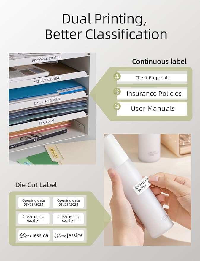 - Multiple Options: Our portable label makers are available in different colors and 2 DPI resolutions: 203DPI and 300DPI. Our sticker tapes come in other cute colors and sizes which can fit 0.35"/0.47"/ 0.63" widths, too!