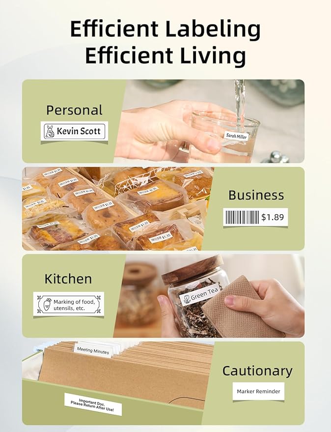 - No More Torn Stickers: With its built-in cutter, our small label maker makes labels a breeze. Simply wait for the label to come out of the printer and press the button to cut the tape.