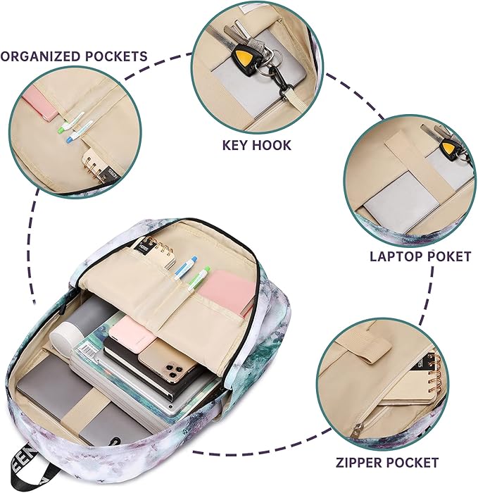 - [Lightweight and Durable] - The bookbag set is made of skin-friendly, durable and water resistant polyester fabric. The package Included: 1* Backpack + 1*lunch Bag