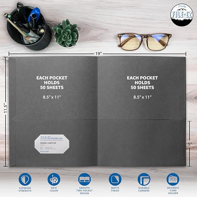 FILE-EZ Two-Pocket Folders, Dark Gray Color, 25-Pack, Textured Paper, Matte Finish, Letter Sheet Size (EZ-32531)