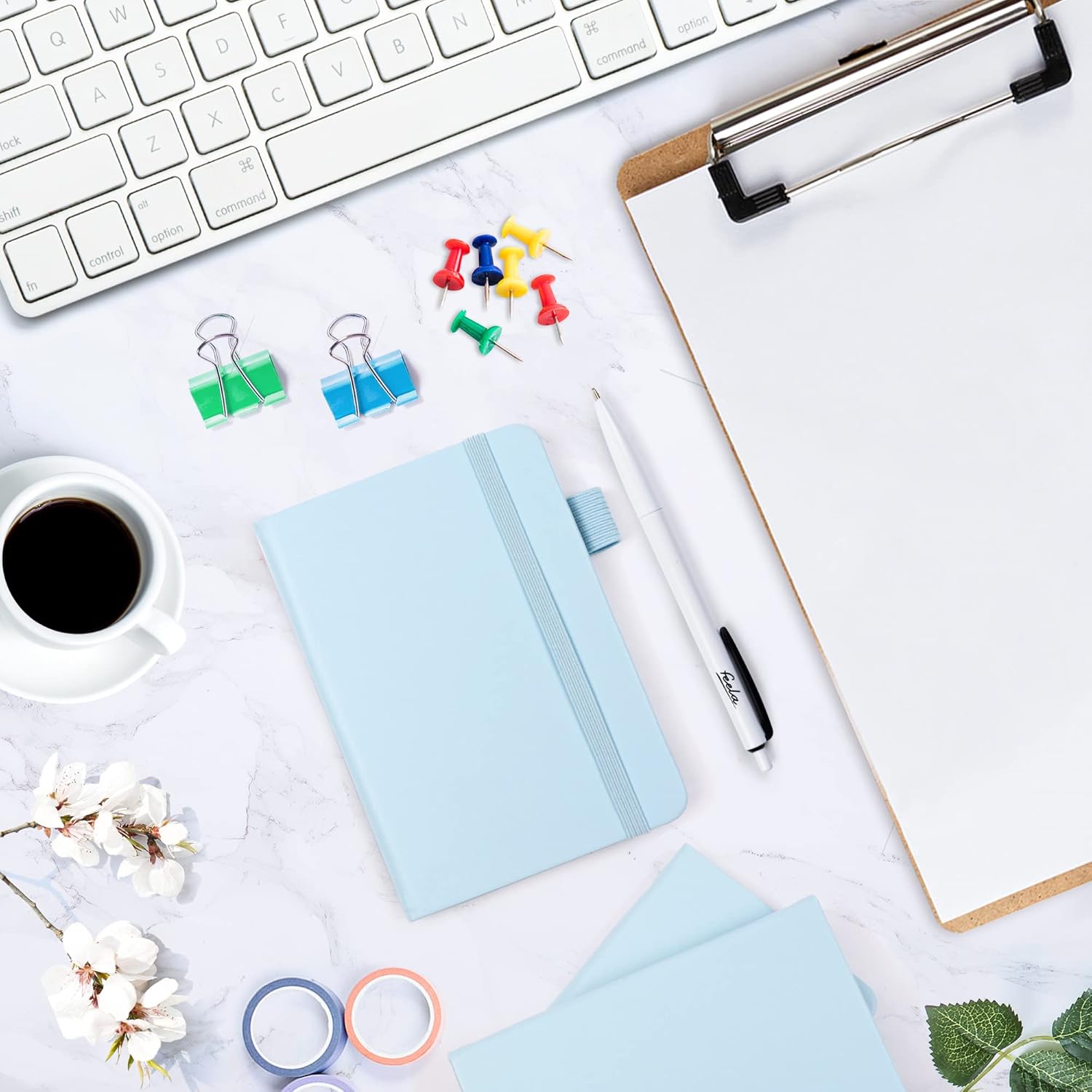 feela 3 Pack Pocket Small Notebook Journals, Mini Cute Memo Notepad Hardcover College Ruled Lined Journals with Pen Holder for Women Girls Office School, with 3 Black Pens, 3.5”x 5.5”, A6, Light Blue