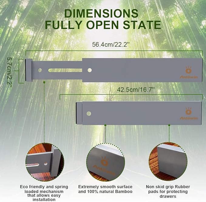 - ORGANIZED DRAWERS: The drawer dividers from ANTOWIN are the best way to avoid a mess in the kitchen, bathroom, bedroom or elsewhere in your home or office. These bamboo drawer separators will help you keep everything organized and tidy at all times!