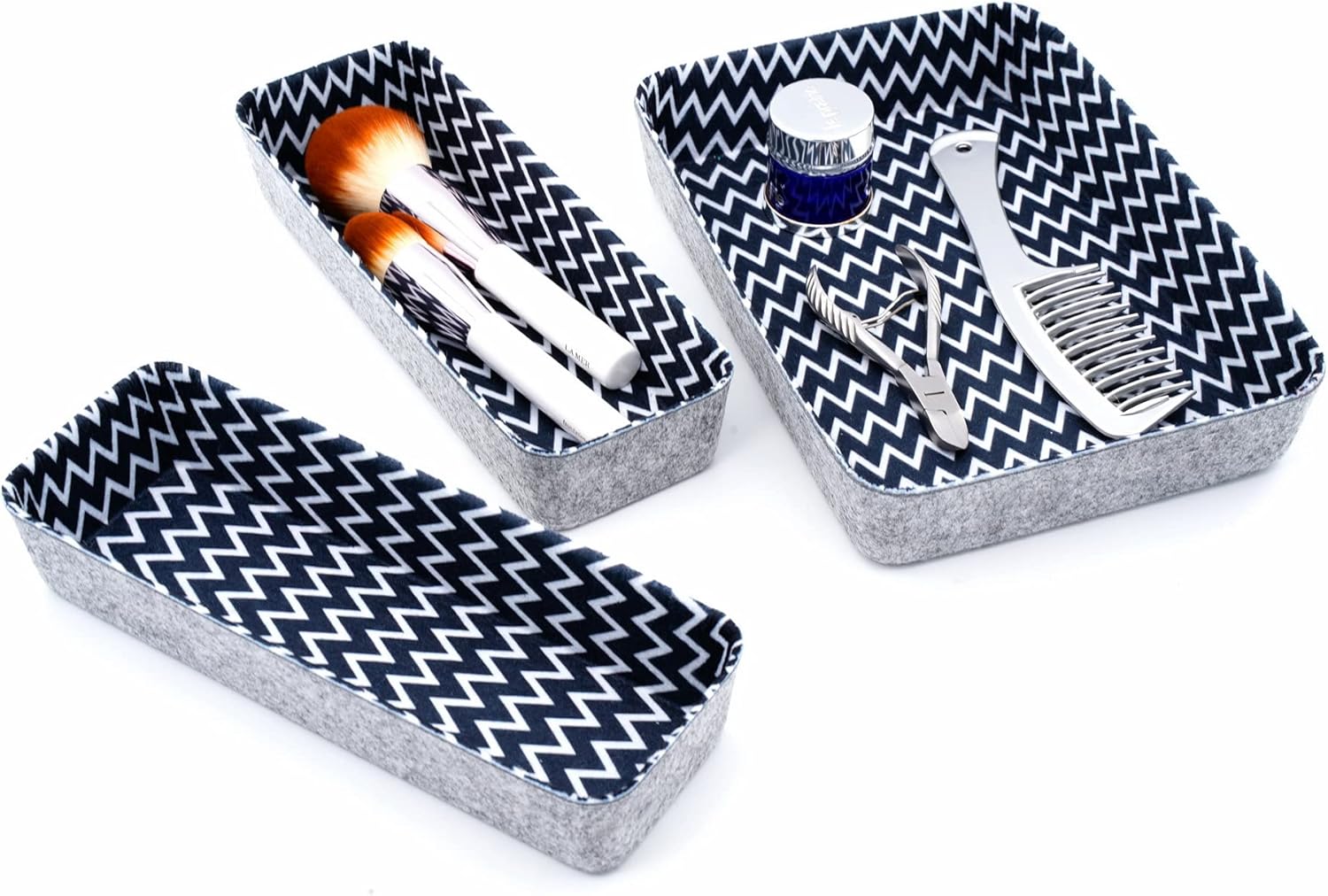 - Package content: pack of 3 drawer organizers , 2 tones pop color contrasts ( inner zigzag pattern ,outer grey color ) .Economic affordable for home office storage and organization. Trendy & modern zigzag elements show a taste of cozy room interior décor.