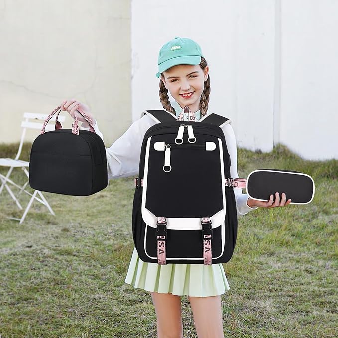 - 【PERFECT COMBO】Buying this back-to-school set, you will get a girls backpack, a personalized lunch bag and a pencil bag. Whether your little one is going to elementary school, middle high school or high school, this back pack set fits a variety of student demands, also perfect for travelling, camping, hiking and other outdoor activities.