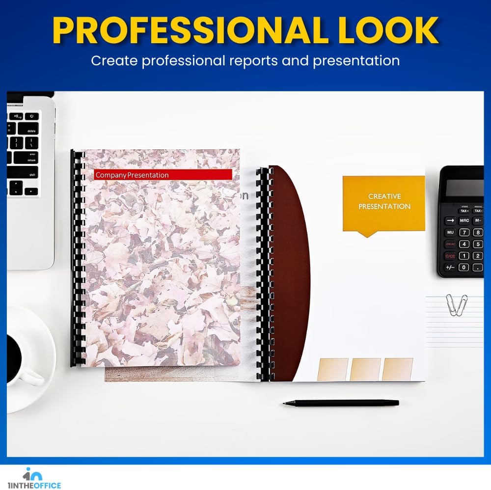 - Versatile plastic comb binding gives a professional appearance to bound reports and presentations.