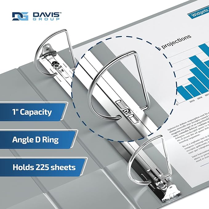 - D-RING BINDERS: These big binders feature D rings and come in 4 sizes: 1", 1.5", 2", and 3". The 1-inch binder holds 225 sheets, the 1.5-inch binder holds 350 sheets, the 2-inch binder holds 475 sheets, and the 3-inch binder holds 625 sheets.