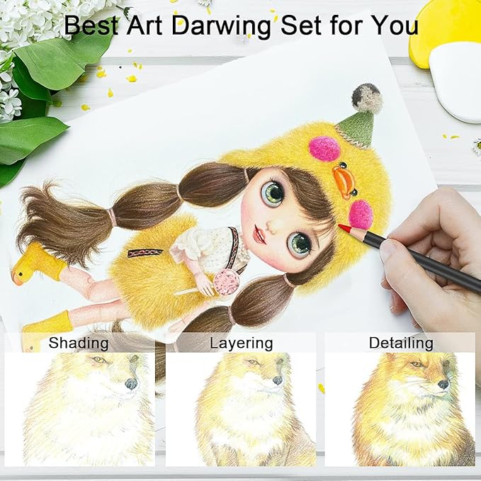 - 【Perfect Gift】Rich and bright colors can add brilliance to your work and life, whether you are a beginner or a professional drawing artist, you can easily create with this drawing kit, it is very suitable as a gift for various festivals, such as: Christmas, Valentine's Day, Thanksgiving, Birthday, school season, etc. (Note: Your satisfaction is our aim, buy our products with confidence, if you are not satisfied with our products or have any questions, please feel free to contact us.)