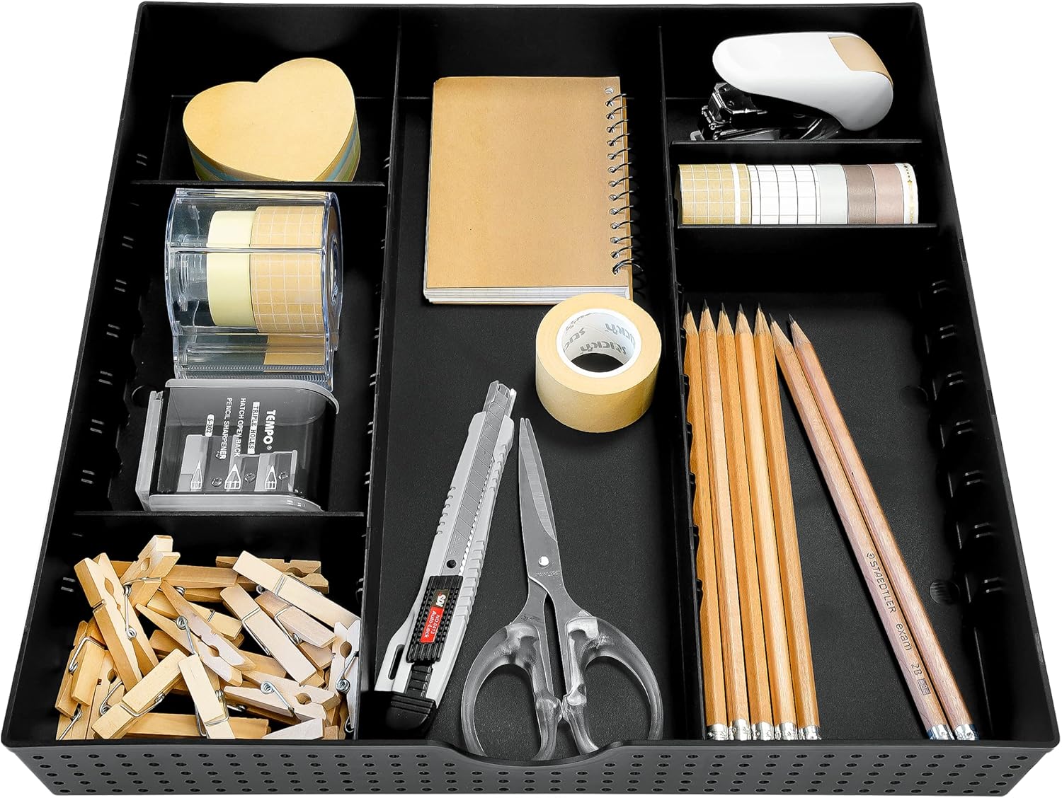 - Adjustable Drawer Organizer: Our drawer organizer has 3 sections with 2 sections adjustable perfect for desk accessories, pencils, pens, cosmetic makeup and others