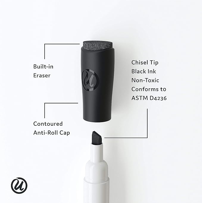 - Easily scrawl out your ideas, noteworthy comments or reminders with 3 elevated, chisel-tipped U Brands markers in classic tones of red, blue and black