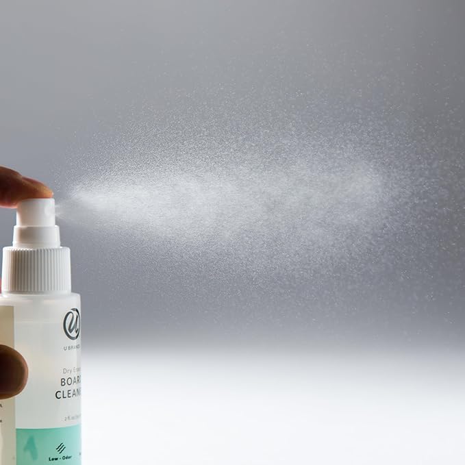 - Not quite clean enough? Use the spray bottle of board cleaner to clear away any remnants that you don’t want to see left behind
