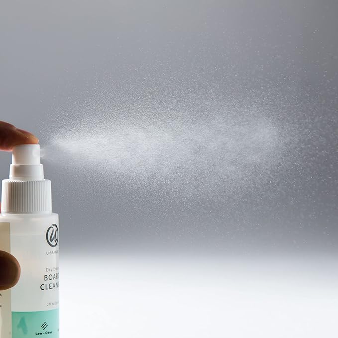 U Brands Fine Tip Dry Erase Markers with Eraser Set of 5, Includes 3 Whiteboard Markers, 1 Eraser, and 1 Board Cleaner Spray