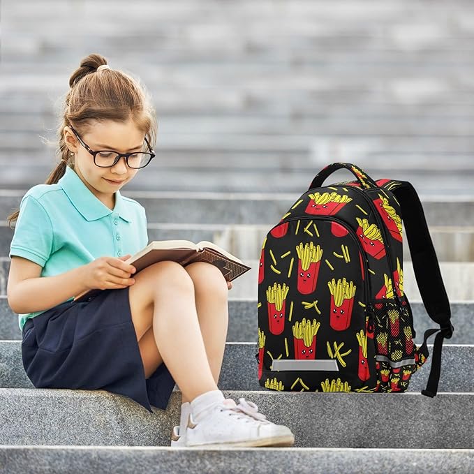Colorful French Fries Backpack for Girls Kids Boys School Bookbags, Student Laptop Backpack Carrying Bag Casual Lightweight Travel Sports Day Packs
